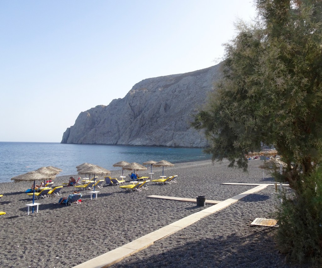 On our third day here, we discovered Kamari Beach – a 20-minute bus ride to the east side of the island. Black pebble beach with a stunning backdrop and sublime swimming. All intentions of visiting other parts of the island vanished. Isn’t Greece all about the beaches? We decided – so far, in our travels, nothing compares to the beaches of Greece.