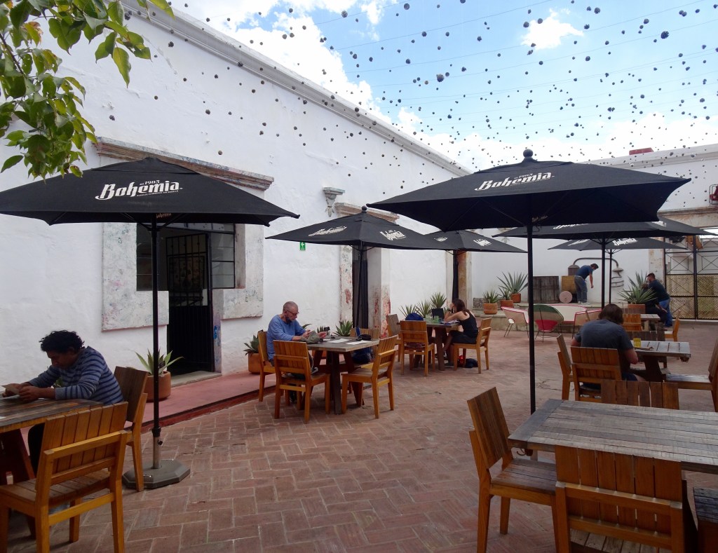 Baltazar, a Oaxacan newcomer, is both restaurant and mezcal distillery/museum. The doors behind Stephen open into three exquisite rooms that, through paintings, text and exhibits, explain the history and manufacture of mezcal. Those objects in the air are pine cones hung from overhead wires. The food was just as imaginative – a three-course comida corrida for $6 CA.