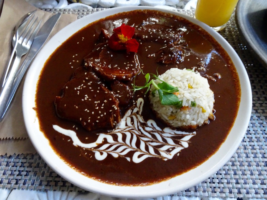 We began with shrimp bisque and then followed with pork mole poblano. This is a classic Oaxacan sauce, made of dark chocolate, pumpkin seeds, chiles, tomatoes. There are several varieties of mole and this one is a bit smoky, a bit sweet and a bit spicy. The pork literally could have been eaten with a spoon. You know when food is so good that words fail you and you just sort of incoherently laugh and groan? That was this dish.