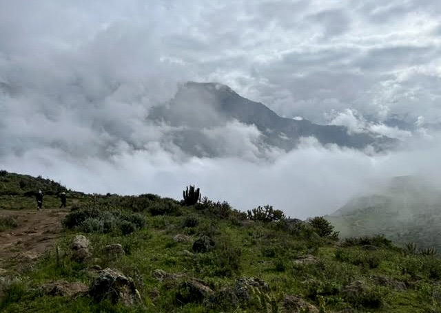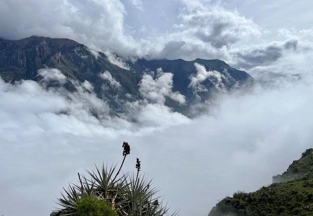 We were up bright and early the next morning in search of condors. But first, we embarked on a half-hour walk on the ridge of the canyon and for all of us, this walk was the most magical part of the tour. We had cloud cover that opened up to reveal peaks that were so indescribable in their ancient-ness and their massive-ness and their Andes-ness that we were all quite at a loss for words.
