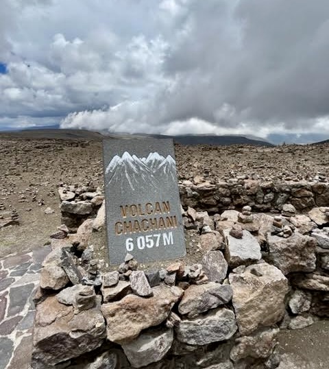 At this same location, there are hundreds of inukshuks left by tourists to commemorate their visits. I constructed a small inukshuk for our grandchildren, Leo and Violet. It is looking in the same direction as Volcan Chachani.