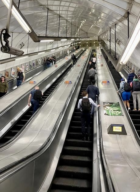 The underground has the longest escalators I’ve ever seen, and many regulars race up the left side as they hurry to work. I clung to the handrail on the right and tried to imagine the peril of travelling these vertiginous stairways with small grandchildren.