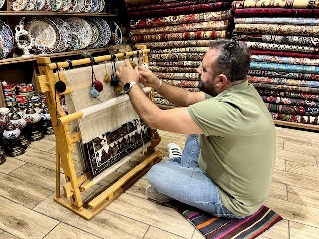 This gentleman was patient and kind with us, and showed us how he weaves rugs on his loom.