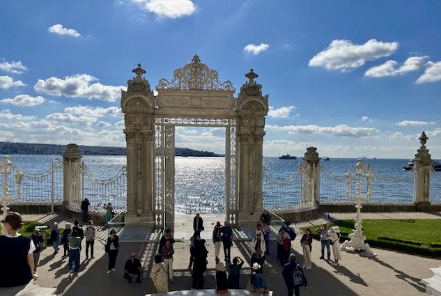 An outside view of the palace, overlooking the Bosporous Strait, the body of water that runs between the Asian side of Istanbul to the European side.