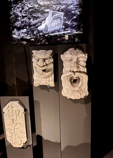 These concrete decorations from buildings survived the bomb.