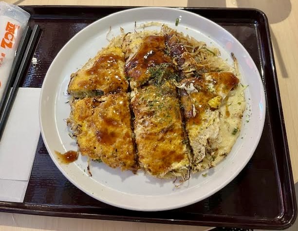 On a much lighter note, Hiroshima is famous for a number of dishes, including okonomiyaki – a layered pancake made of batter, shredded cabbage, thin slices of pork, green onion and noodles, all cooked on a grill until crispy and so delicious.