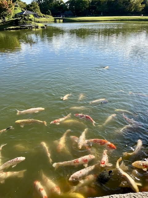 Dozens of koi and turtles swarmed this area; obviously a popular feeding place.
