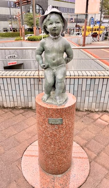 The folktale of Momotaro began in Okayama and there are statues of him to be found all over the city. As the story goes, Momotaro was a boy born from a giant peach who teams up with a dog, monkey and pheasant to defeat demons on Demon Island. He is a model for young children as he faces challenges and overcomes hardship. I just love his adorable little toddler body and the whimsy of making him the town mascot.