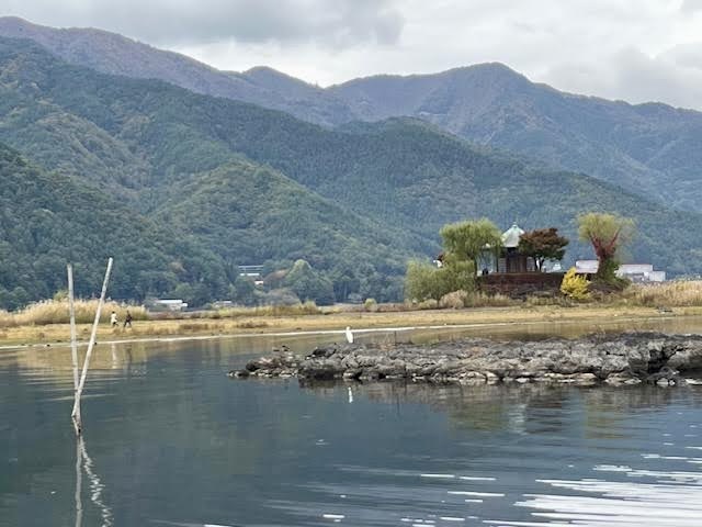 Next up – our 20-km. bike ride around the lake. It was so much fun in every way, with just a couple of small issues. Driving in Japan is on the left-hand side, so it took a tiny bit of adjusting, but we just followed the blue markers and followed the road counter-clockwise. The bigger challenge was that the roads are quite narrow and the traffic was heavy in spots – we just had to pay attention. We had a number of places where the cycling lane was diverted to no-vehicle pathways, which was a delight.