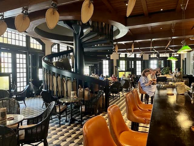 Today, it is de rigueur to visit the Long Bar and order a Singapore Sling, but we stopped by at 11:00 am, and just couldn’t face a sugary alcoholic drink. However, we hung out long enough to soak up a little old-time ambience. There is something about dark polished wood and whirring fans…
