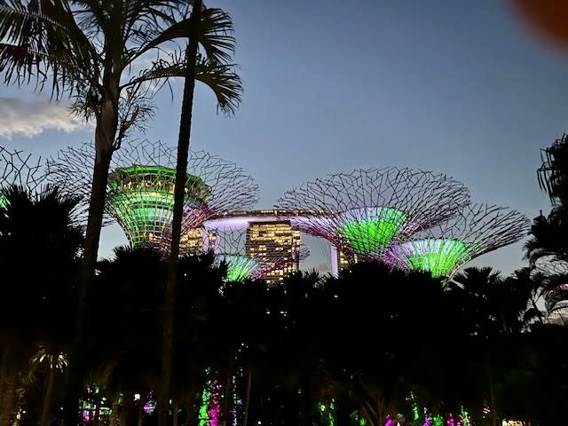 We stayed for the light show at the Supertree Grove – six massive trees illuminated with a light and music show.