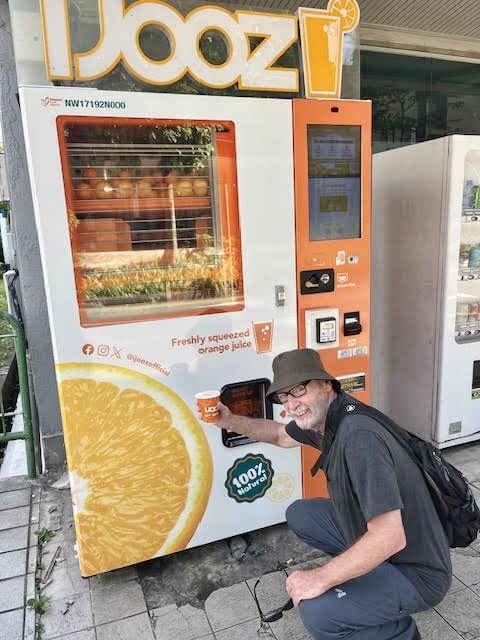 History-soaked beverages are not the only tempting drink on offer in Singapore. There are numerous vending machines around town with freshly squeezed orange juice for just $2! The machine is filled with whole oranges that swivel and drop down to be squeezed into a cup – nothing added but fresh juice. So delicious, and so much appreciated in the heat.