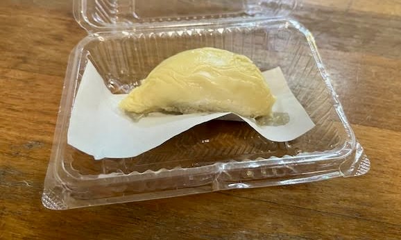 I did finally have my opportunity to try durian, that smelly love-it-or-hate-it smelly fruit. A small stall was selling durian by the piece, which was exactly what I’d been looking for.