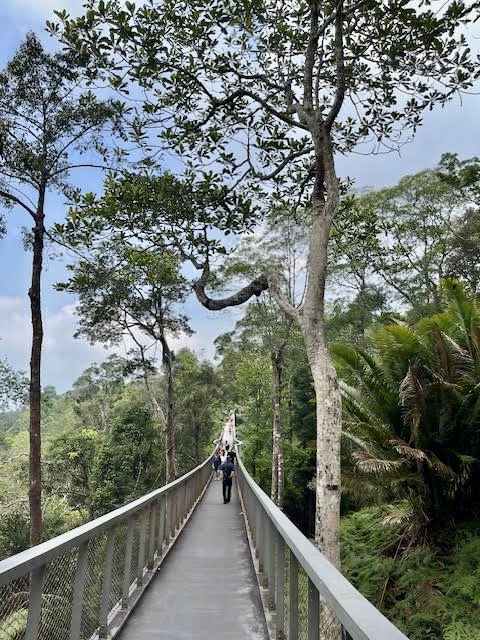 Once at the top, it is a short walk to the Habitat rainforest park – a stunningly beautiful area that has short hiking trails and a breathtaking canopy walk over a suspension bridge. The big catch up there are the flying squirrels – apparently as big as cats with distinctive brown and tan markings and webbed feet that allow for gliding. We did not see a single squirrel, flying or otherwise, but we did have to edge by a number of monkeys.