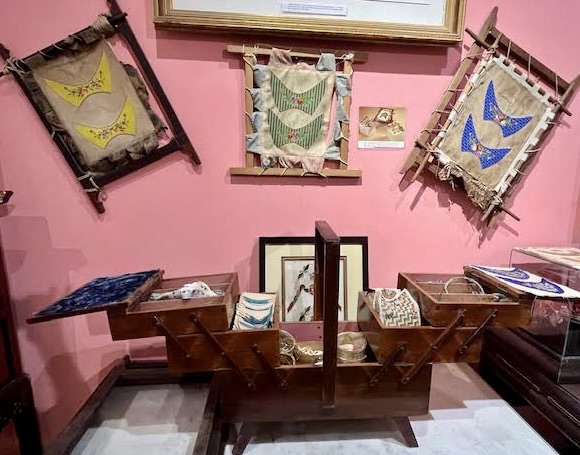 Part of the tour I found interesting was the double-edged sword of being a wealthy woman up until less than a century ago. You didn’t live in poverty and break your back in hard labour, but there were other sacrifices. Wealthy women were considered fragile, subjected to staying indoors and spending hours doing beadwork and needlepoint.