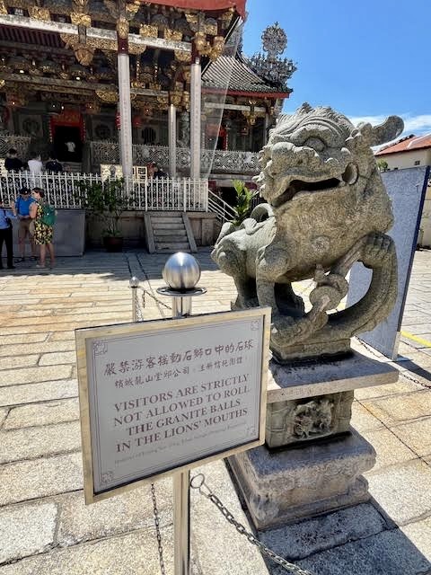 You know when you read a sign that isn’t necessarily logical, but clearly necessary? Enough people have found it irresistible to reach into the lion’s mouth and play with the stone balls inside that signs have had to be posted.