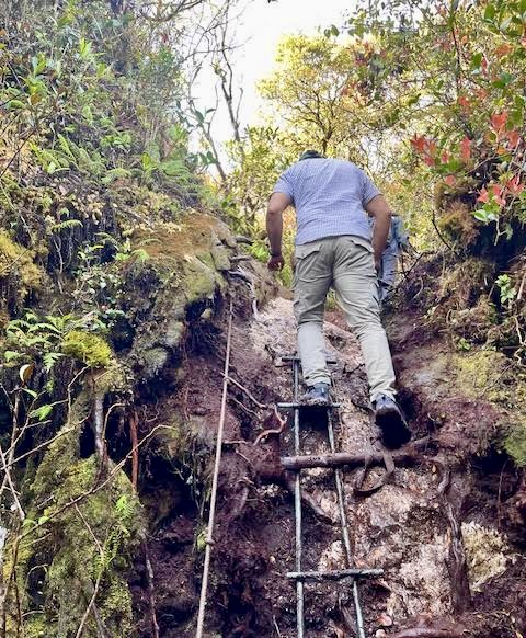 The climb back down was equally challenging; tackling ladders and ropes along the way. Most of us slipped in the mud, a couple fell right down, but no injuries.