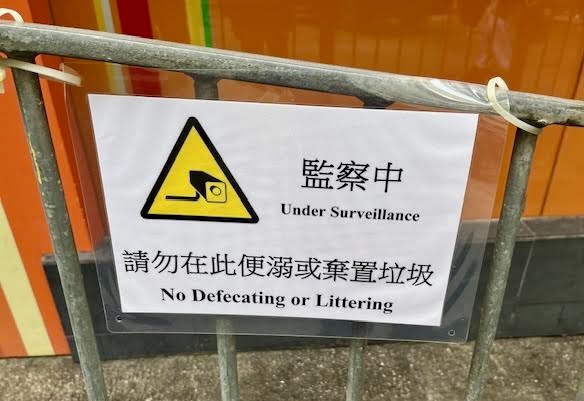 Now this sign got me thinking. Public defecation and littering don’t really fall into the same category of social misbehaviour. Many people litter, but I have to think that very few are comfortable with squatting in the street. Certainly if you are of that mindset, the idea of surveillance won’t be a deterrent.