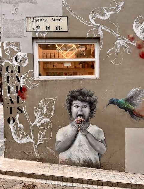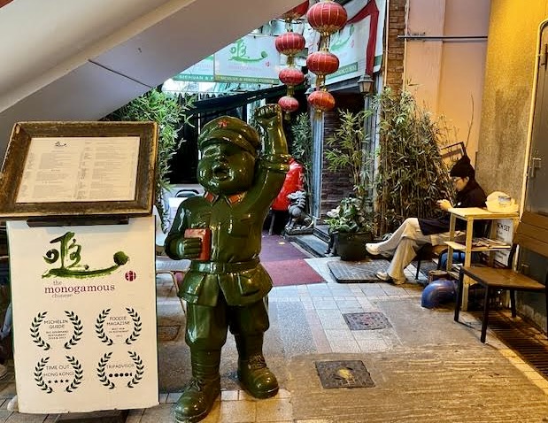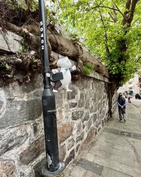 These cheery little cats brighten the landscape around mid-level HK. It can become a game to try and find the many cats that are within a few block radius. We found three.
