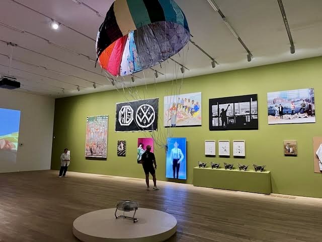 There is a contemporary art gallery in one of the buildings. This is the main theme of the artwork.