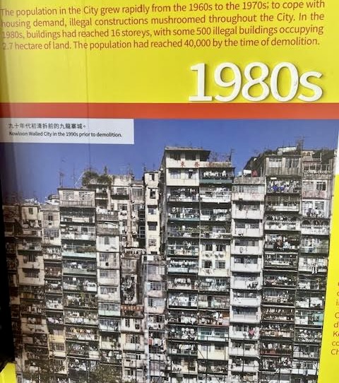 This was once one of Kowloon’s most notorious slums – so densely packed and filled with labyrinthine little alleys, drug dealers, hanging wires, illegal activities of all sorts, even unregistered dentists who could not practice elsewhere. Fires were a constant threat, there was no running water, hygiene was non-existent and the cops were afraid to enter the area. At its max, over 40,000 people were crammed into this lawless neighbourhood until finally, in the 1990’s it was demolished.
