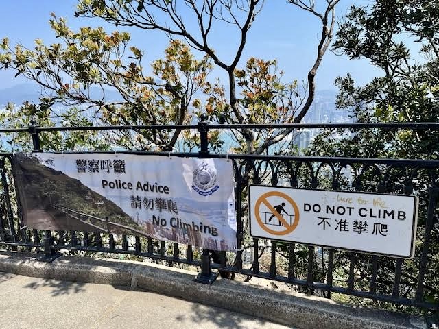 As is often the case, we come across signage that leads to more questions than it answers. Now, the “Do Not Climb” sign is posted at several locations along the walk. It would seem obvious that climbing on an old wrought iron fence with a sheer drop of several hundred feet below is a bad idea. Still, at this one location, the police felt necessary to remind the common-sense-challenged of the dangers involved. I wondered,” had there been a tragic fall at this particular spot?”