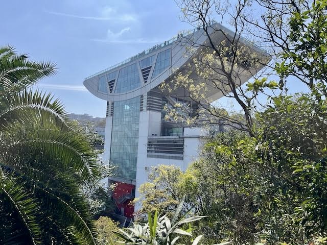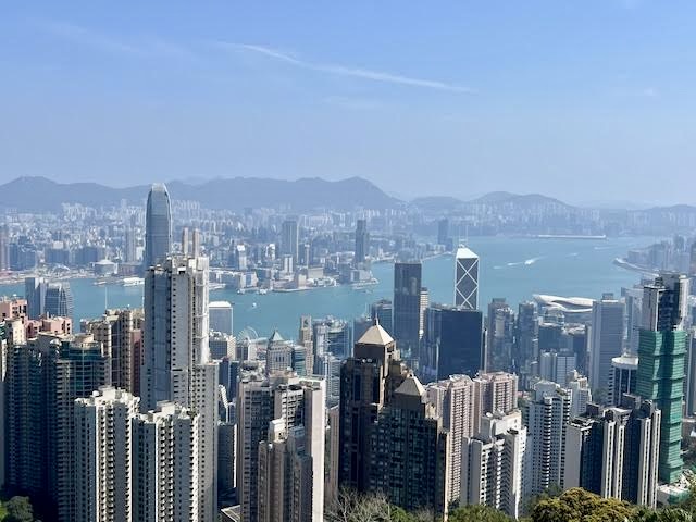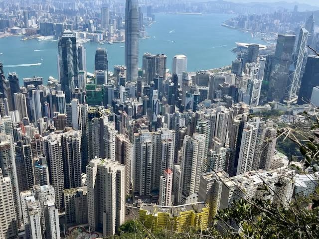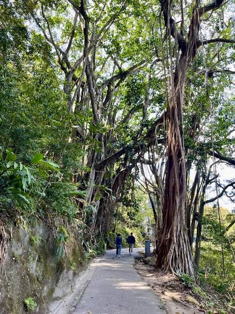Another big attraction is the Peak Tram. Operating since 1888 as Asia’s first funicular railway, this iconic 10-minute ride up the mountain is a must-do, except…it wasn’t running. It had been closed for four days for maintenance, so we went up the first day in operation, only to discover it still needed some tweaking. So, we hopped on a bus and once at the summit, we took a very pleasant one-hour stroll around the Peak Circle Walk. The path was like this the whole way and the views were simply glorious.