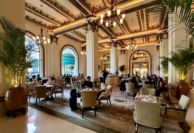 Hotel guests are whisked away to and from the hotel in grand style – a Rolls-Royce or a Bentley. Today we saw a helicopter land on the hotel roof.
