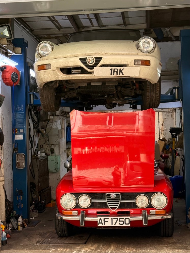 Those who do have cars (albeit Aston Martins), back them into these tiny garages for service.